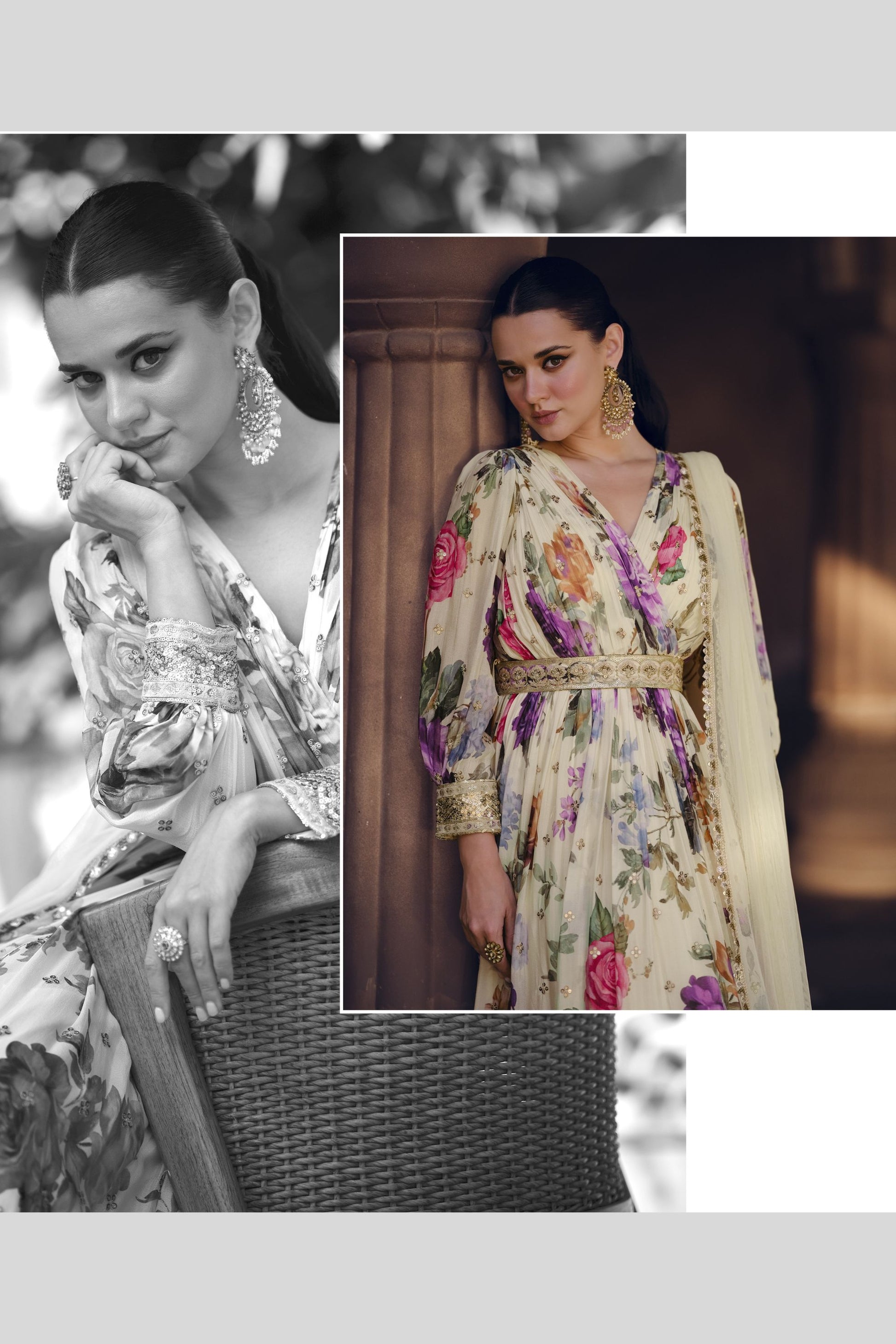Experience elegance and beauty with our White Georgette Floor Full Length Flower Printed Anarkali Gown. Perfect for festivals and weddings, this gown features delicate embroidery and stunning prints for a timeless look. Made with high-quality georgette fabric, it offers both comfort and style for your special occasions.