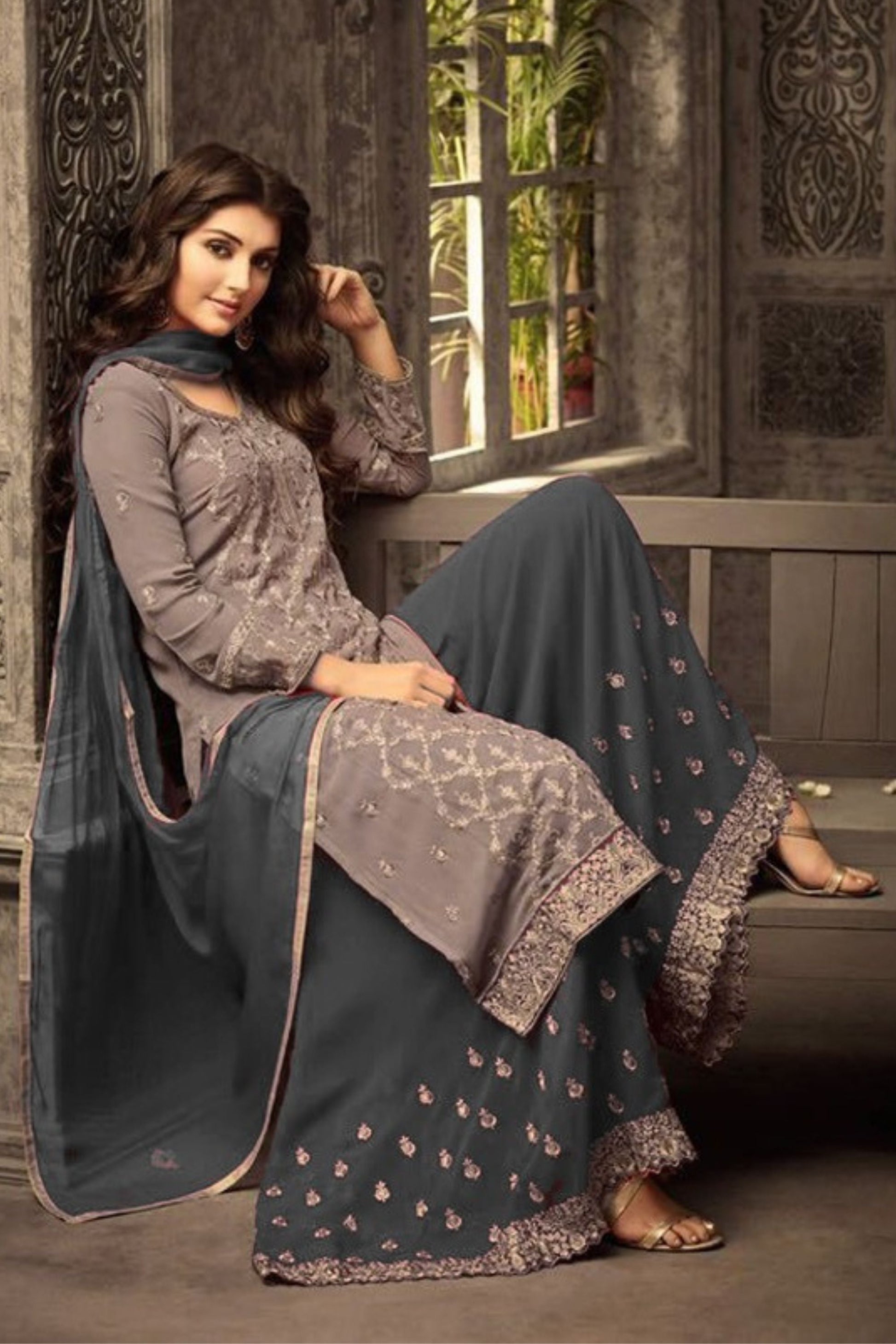 Elevate your wedding or festival outfit with our stunning Yellow Chinon Silk Plazo Suit. This elegant ensemble features intricate embroidery work, adding a touch of sophistication to any occasion. Made of high-quality Chinon silk, it offers both comfort and style, making it a perfect choice for your special events.